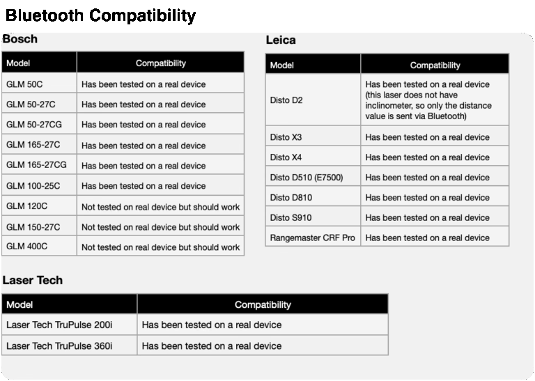 As far as range finders go, there are only few models that are officially On-Axis-supported, but the app creator Olavi Köykkä can tell you that there are several app users out there who are operating other range finders and just disregarding the Bluetooth export feature. Once again, the only crucial factor is the inclinometer.