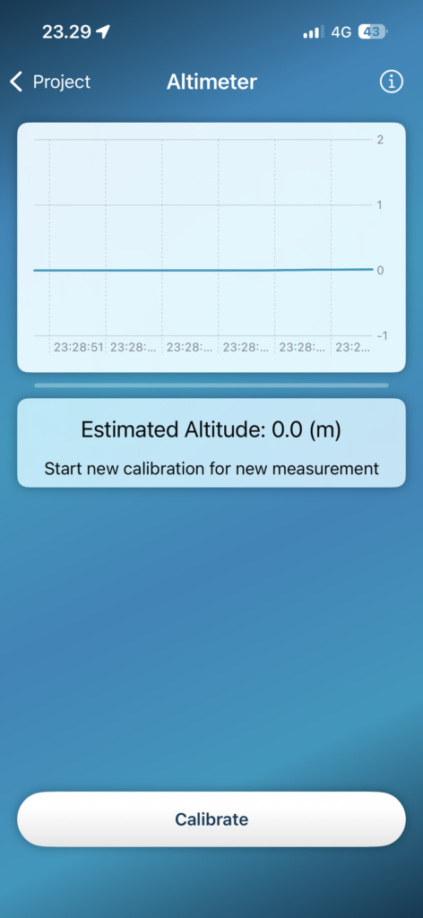 The altimeter uses the device’s internal barometer to measure atmospheric pressure, which can be used to calculate relative altitude. This is an experimental tool, so please be cautious with the results! This tool is intended for use as a rough estimate of elevation differences in outdoors, so it is not a precision tool.