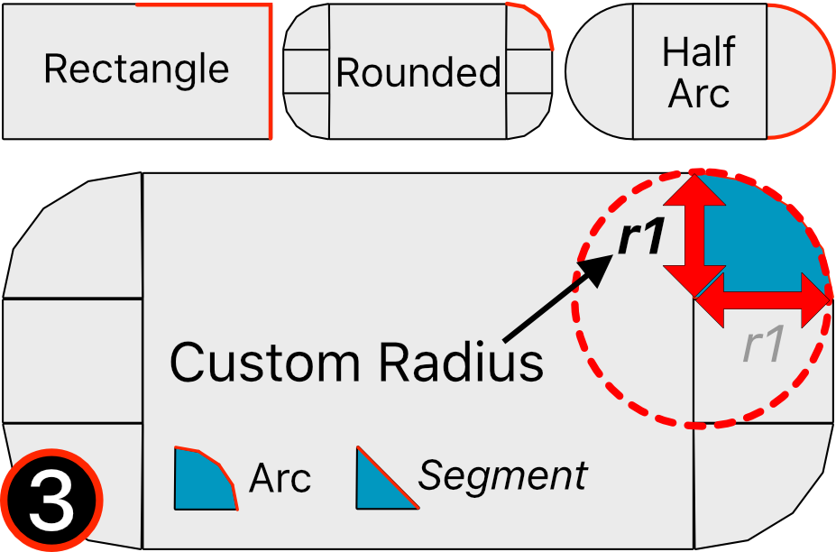 The Resolution at which the corners are drawn can be modified. By default, corners are drawn from four pieces, a higher resolution will result smoother shape, but slower performance in many prediction softwares.